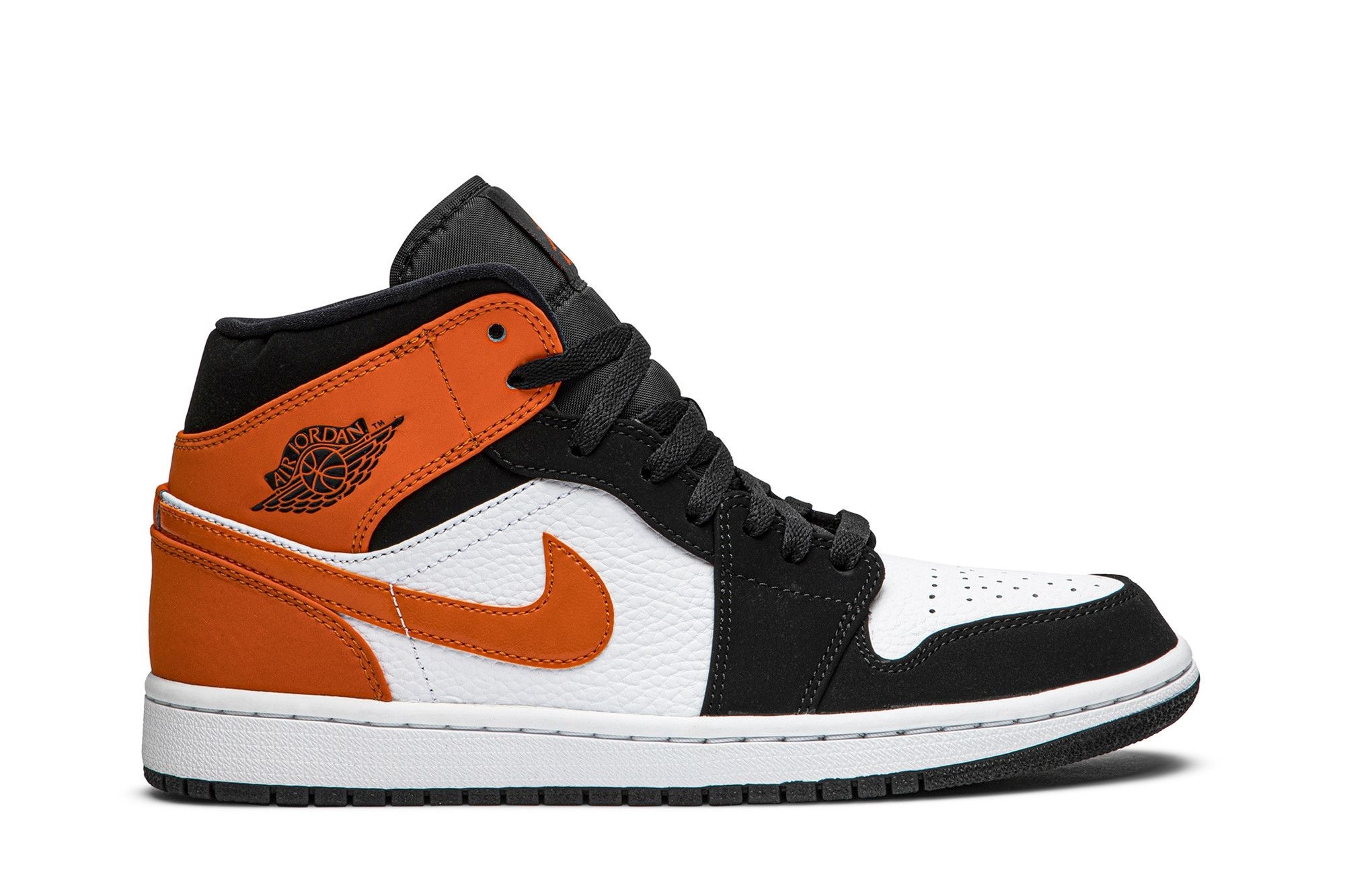Air Jordan 1 Mid Shattered Backboard (554724-058). Iconic Black/White-Starfish colourway. Celebrating MJ’s legendary 1985 dunk. Classic silhouette with comfort and style.