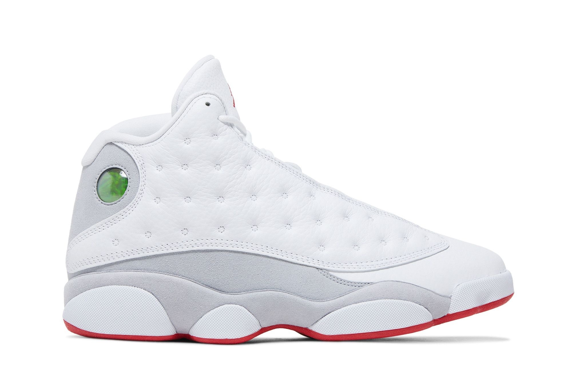 Jordan Brand 13 Retro Wolf Grey (414571-160) men’s basketball shoes. Premium white leather with grey & red accents. Iconic design, breathable & comfortable. Perfect for court or street style.