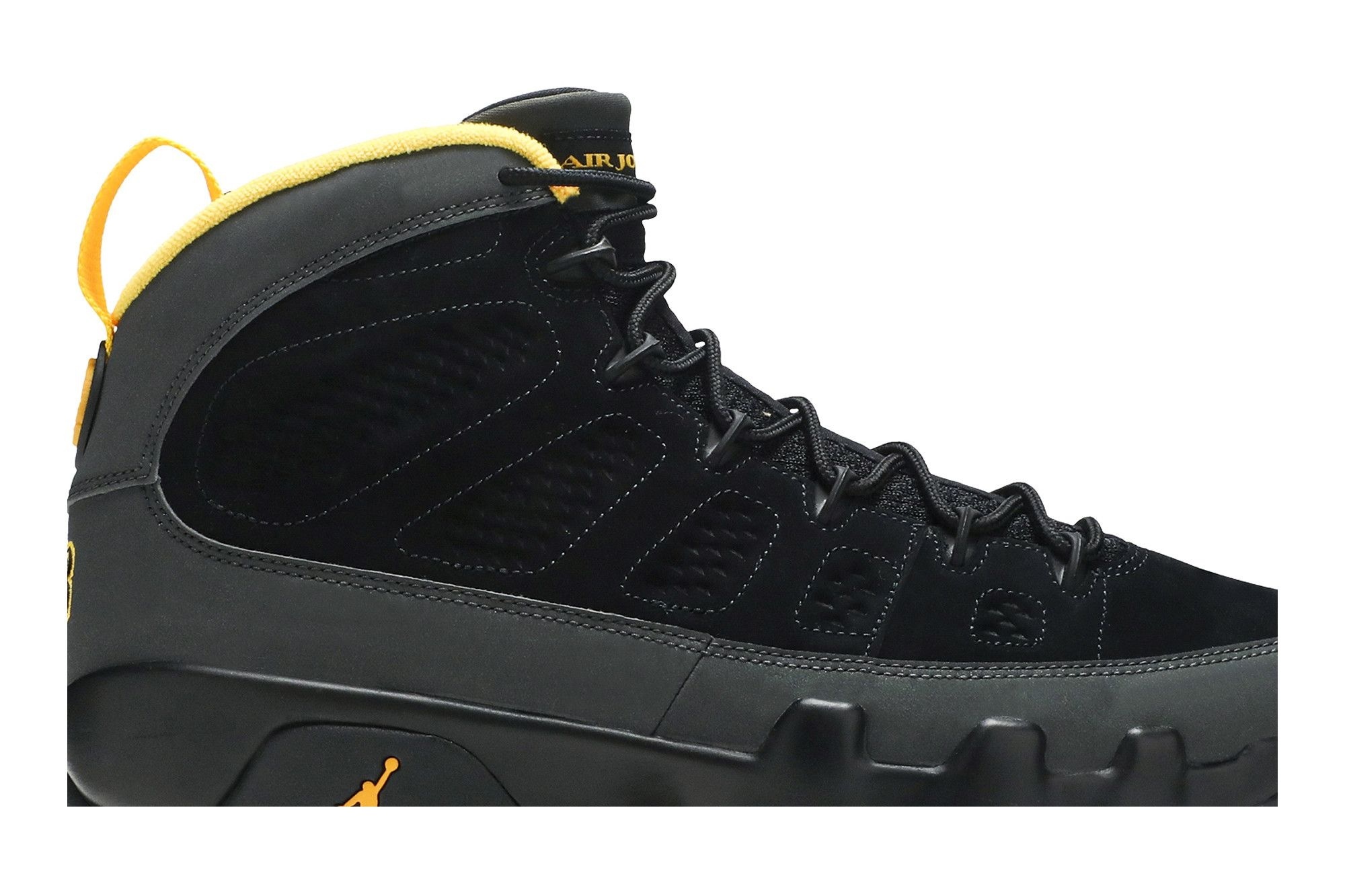 Jordan Air Jordan 9 Retro (CT8019-070). Dark Charcoal/University Gold colourway. Premium nubuck upper, iconic design. Released January 2021. Comfortable and stylish.