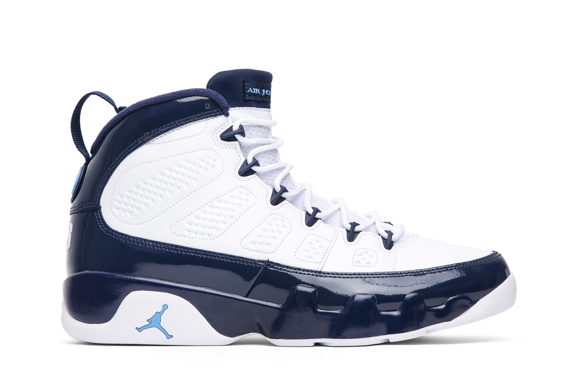 Jordan Brand Air Jordan 9 Retro Pearl Blue (302370-145). Classic white & university blue design. Released Feb 2019. Comfortable, stylish, & durable. A timeless addition to any sneaker collection.