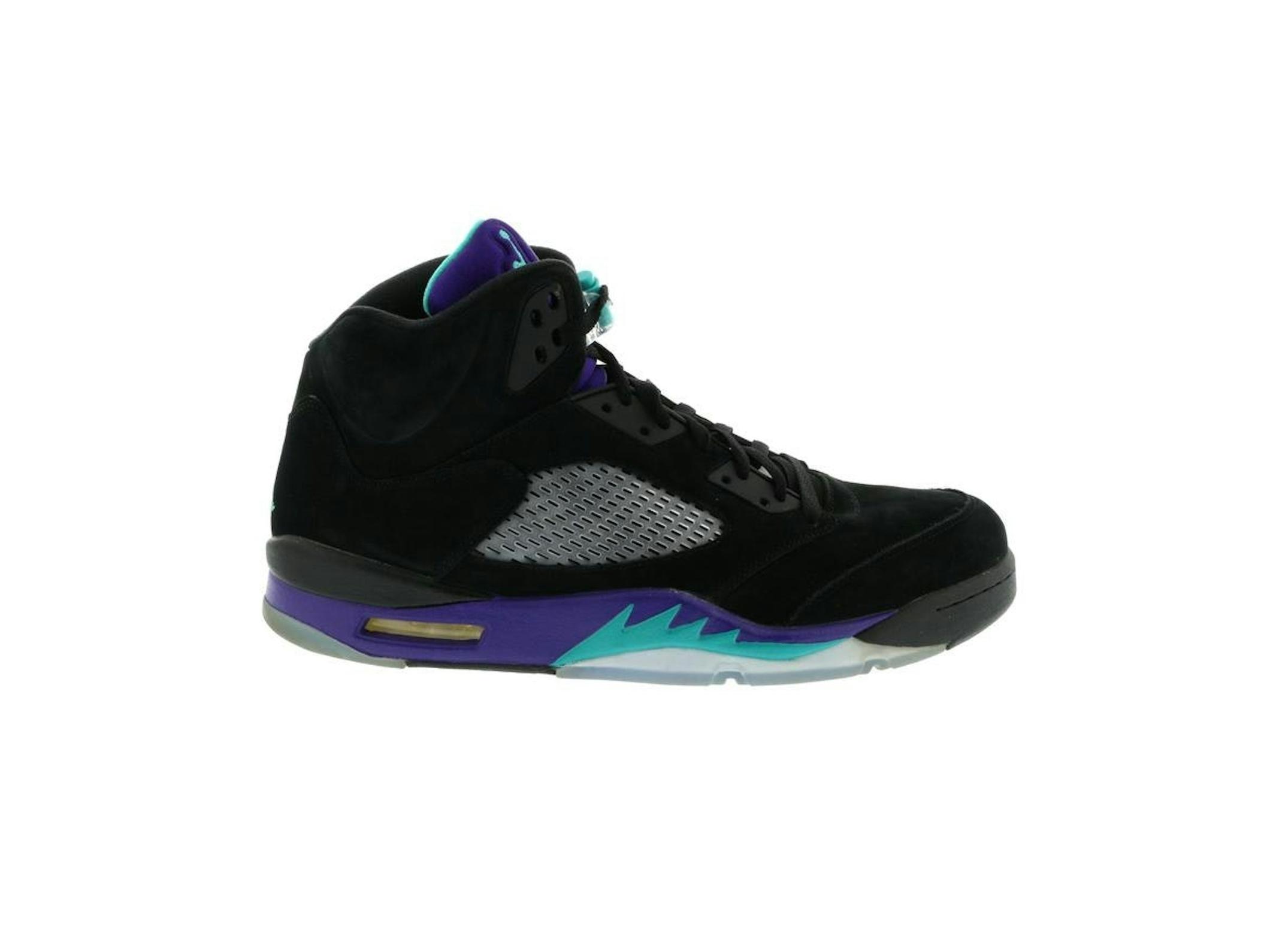 Air Jordan 5 Retro Black Grape 2013. (Brand: Jordan). Black/New Emerald-Grape Ice. MPN: 136027-007. Classic style, premium materials, and comfortable Air cushioning.