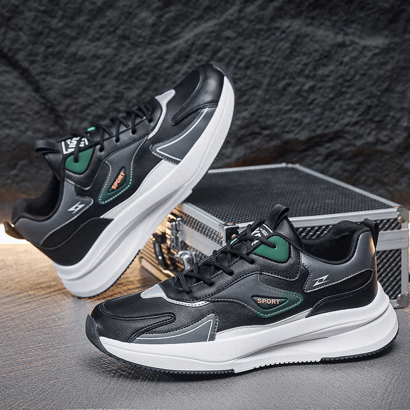 These men’s casual sneakers feature a stylish multi-color design with green, beige, and black accents for a modern sporty look. Made from durable synthetic leather with breathable lining, they offer both comfort and style for everyday wear. The cushioned midsole provides excellent support and shock absorption, while the rubber outsole ensures good grip on different surfaces. The lace-up closure allows for a secure fit, and the padded collar adds extra comfort. Ideal for casual outings, walking, or light sports activities.